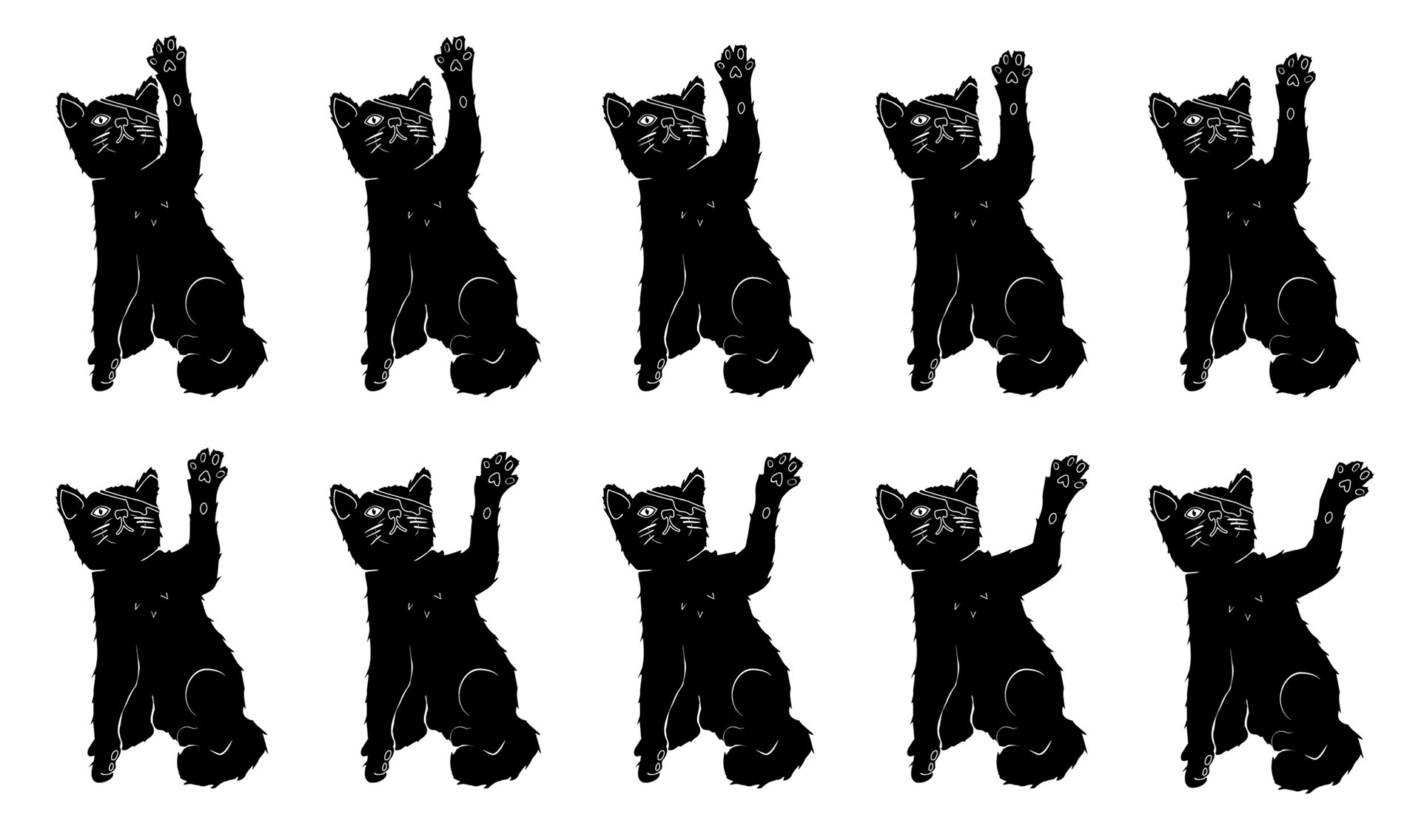 I started by drawing different versions of Derp Cat to determine which one to animate. Eventually, I settled on one with his paw in the air. I then redrew the cat to make it more accurate. Third, I image-traced it on Adobe. I cut the parts of the hand and duplicated them into different layers to adjust them to create movement. Lastly, I used the timeline in Photoshop to make them into GIFs.
